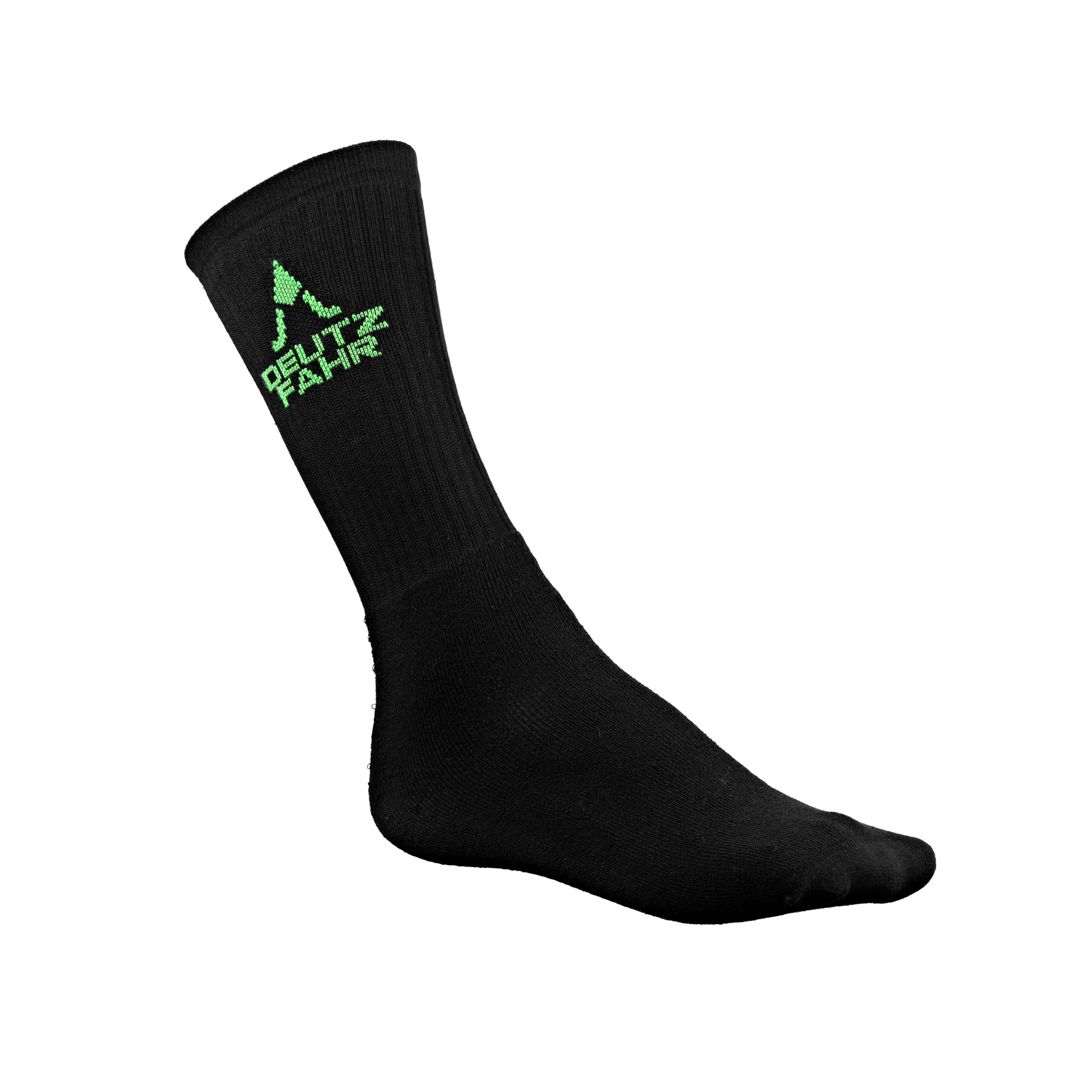Kurze Röhrensocken aus schwarzem Frottee mit grünem DEUTZ-FAHR-Logo. Einheitsgröße. Polybag-Verpackung.